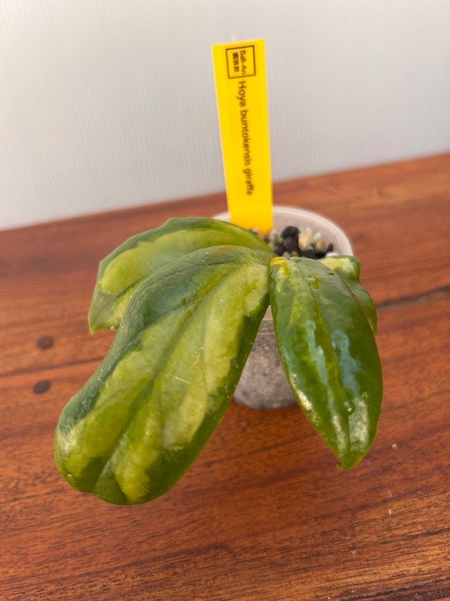 Hoya buntokensis giraffa ボルネオ原産の buntokensis から選抜された斑模様が強く現れる “Giraffa” タイプ。 名前の通り、キリンのような模様が葉全面に入るのが特徴。 一枚一枚の表情が違って魅力的。 葉はやや肉厚、細長いフォルムで柔らかな印象です。 透明 A-25 ☟☟☟購入の前にご確認下さい。☟☟☟ ※植物なので不在を避けたいので、備考欄に必ずご希望の配達日時をご記入下さい。 ※配送方法はゆうパックで配送致します。 ※ご注文を頂いた後3日以内に配送致しますが、 天候等の影響により遅れて配送させて頂く場合があります。 ※輸送時に葉先が折れたり葉に傷がつく可能性があります。 ※植物のため、写真撮影後の生長、または季節による変化があります。 ※虫が出る可能性があります。 ※お写真のものをお送りしますが、店舗でも販売しておりますので更新の都合上、欠品の場合があります。 ※植物ですので、葉や幹に変色や傷などがある場合があります。 ※梱包はリサイクルダンボールを使う場合があります。 ※発送後の返品・キャンセルはできません。 ご了承下さいませ。
