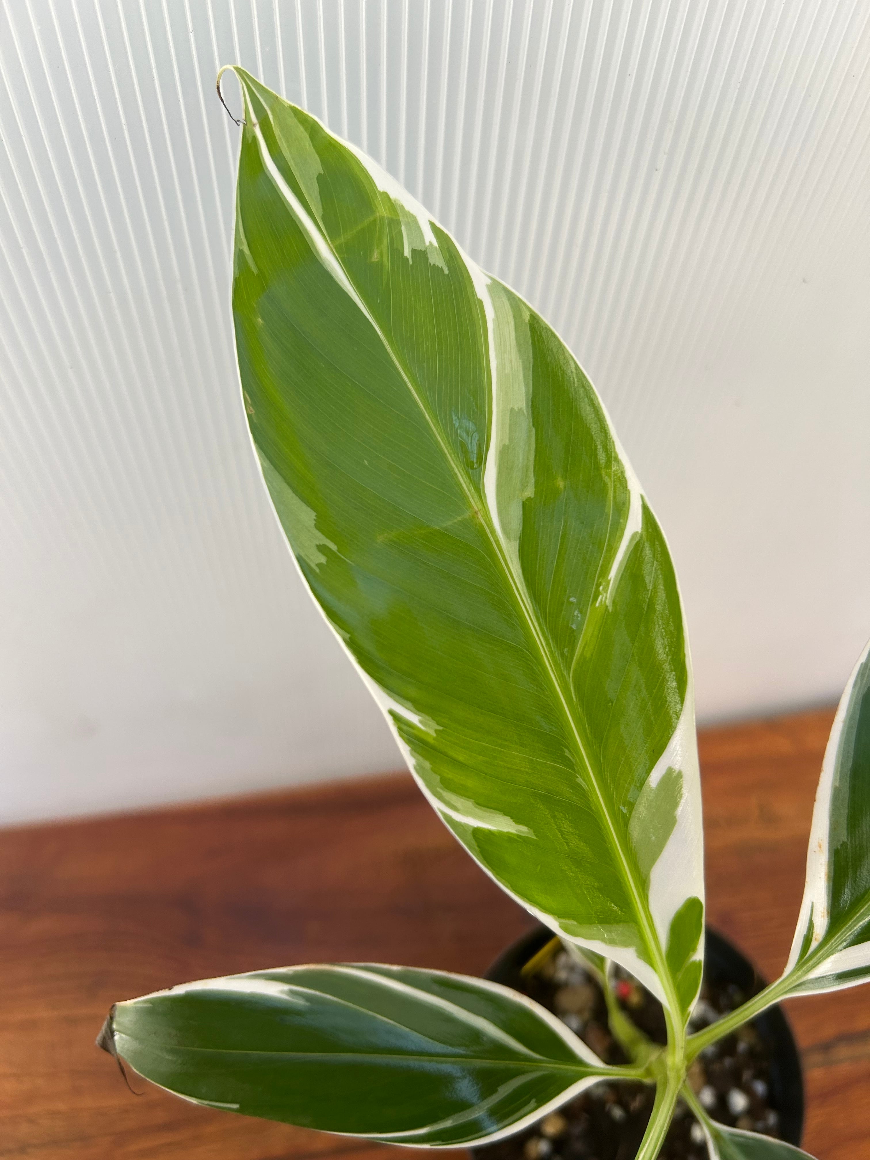 バナナ系の中でも “葉の繊細さ × 斑の表現力” がひときわ際立つ希少なバリエガータ個体です。